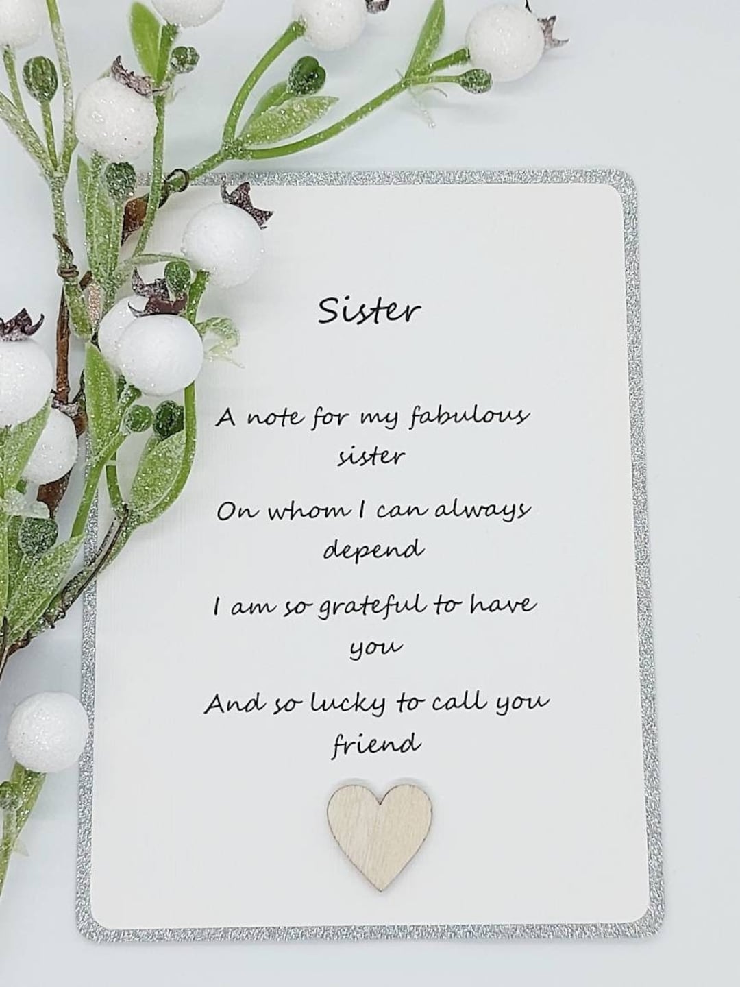 Sister Card/ Postcard Style Card for Sister/ Sister Poem/ Gift for